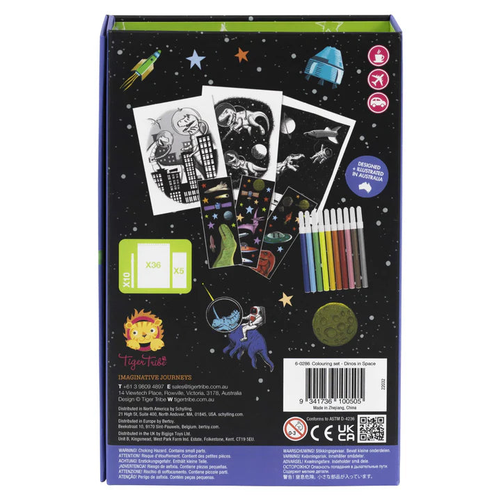 • Classic Tiger Tribe colouring set featuring fun dinosaurs in space illustrations