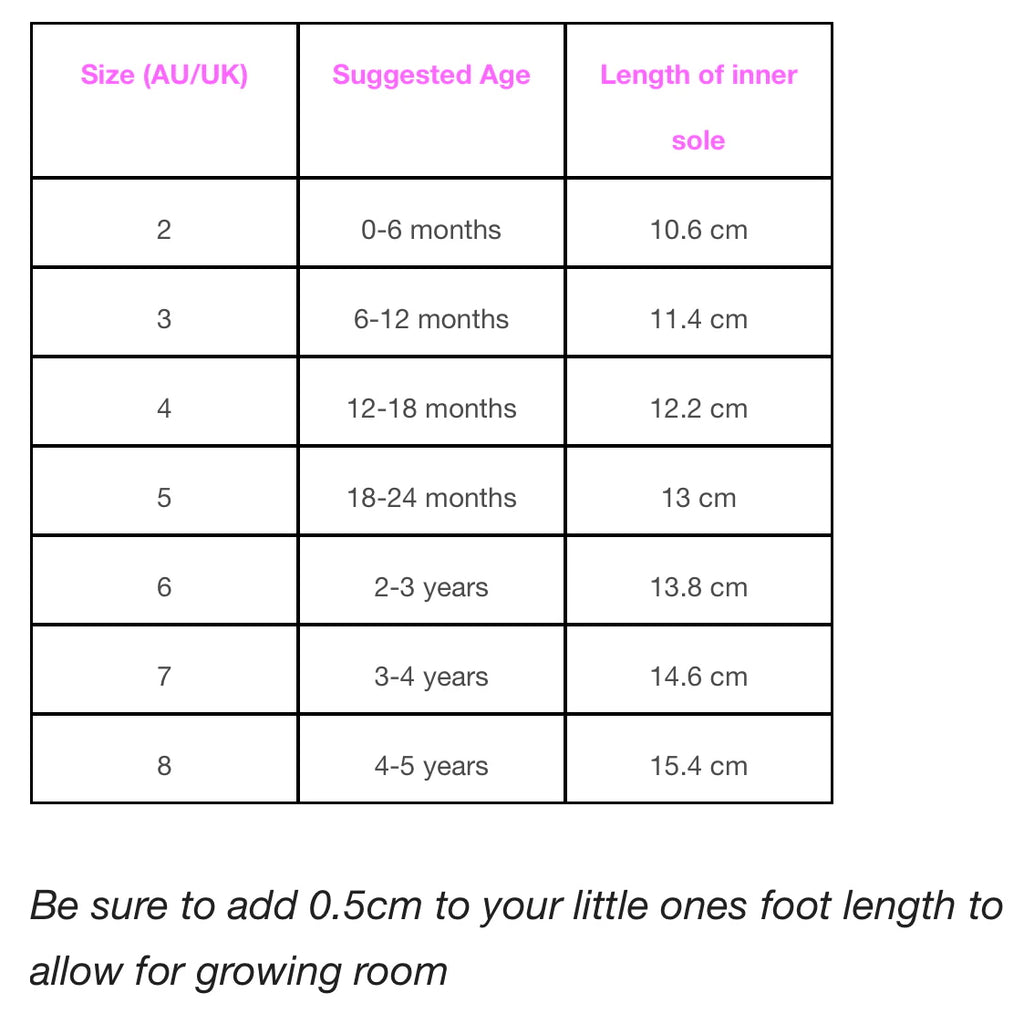 - Size 3-5 customised alphabet rubber flexible sole to allow your little ones feet to develop naturally and safely