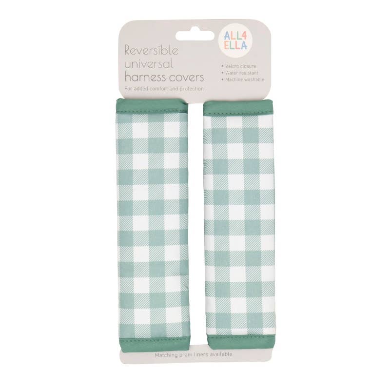 Enhance your baby's travel experience with our Gingham Sage Universal Harness Covers, perfectly matching our Gingham Sage Universal Pram Liner.
