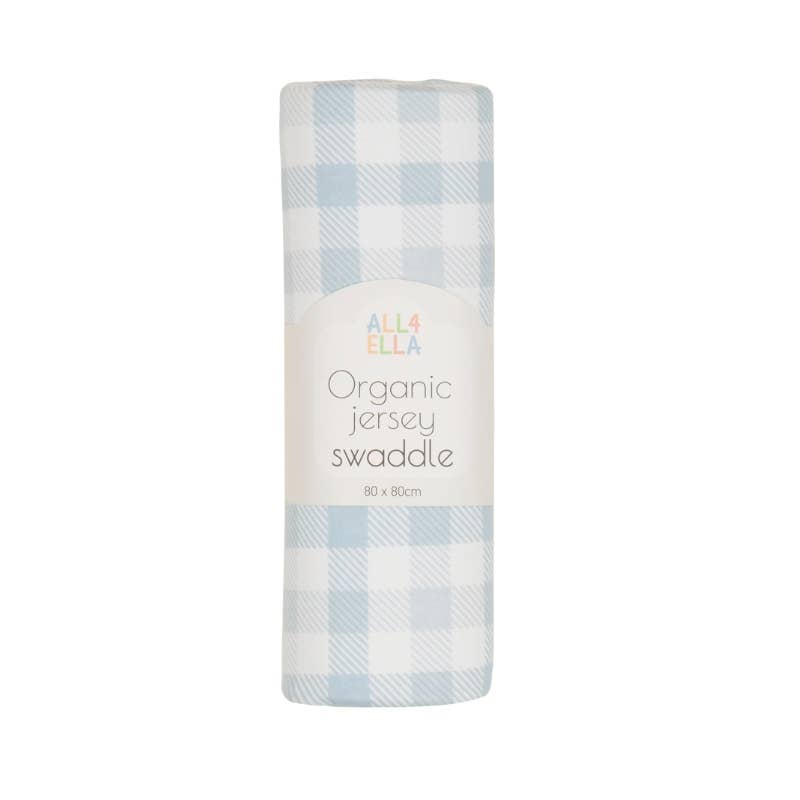 Soft enough for newborn skin and designed with comfort in mind, our Gingham Blue Organic Jersey Swaddle is a must-have essential for those first precious months. Made from 100% organic cotton, it offers a gentle stretch that makes wrapping your baby snugly and securely easier than ever.