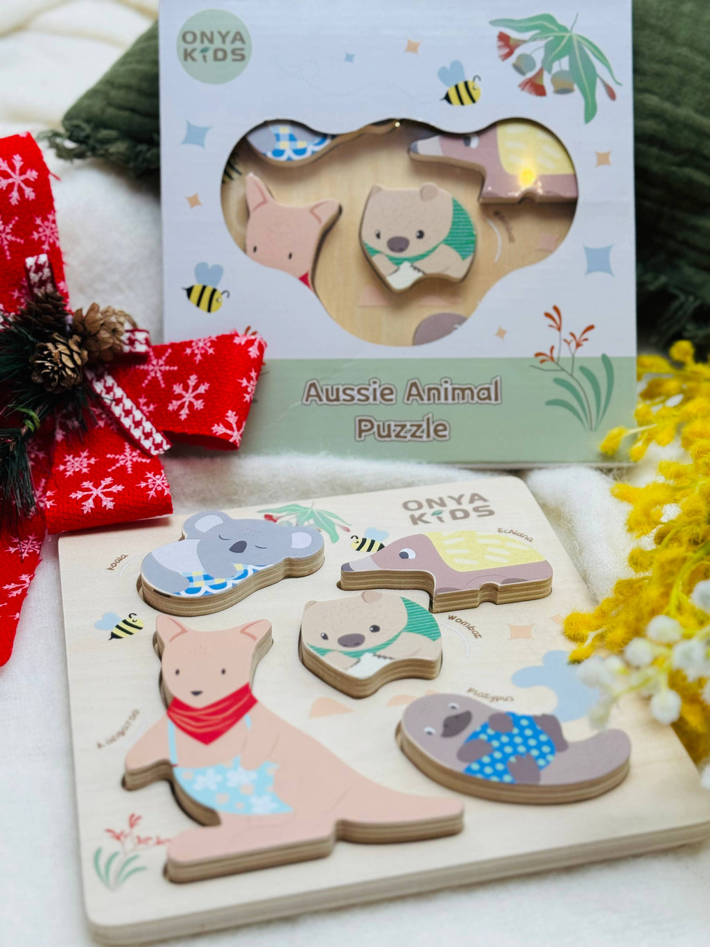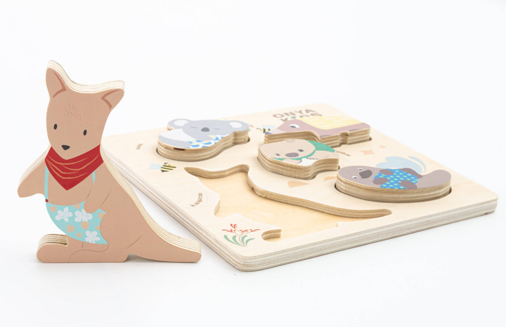 A high-quality 2-in-1 chunky wooden puzzle designed in Australia Meet the Onya Kids Aussie Animal Puzzle — a beautifully made, high-quality 2-in-1 toy that celebrates Australia’s unique wildlife through play and learning.