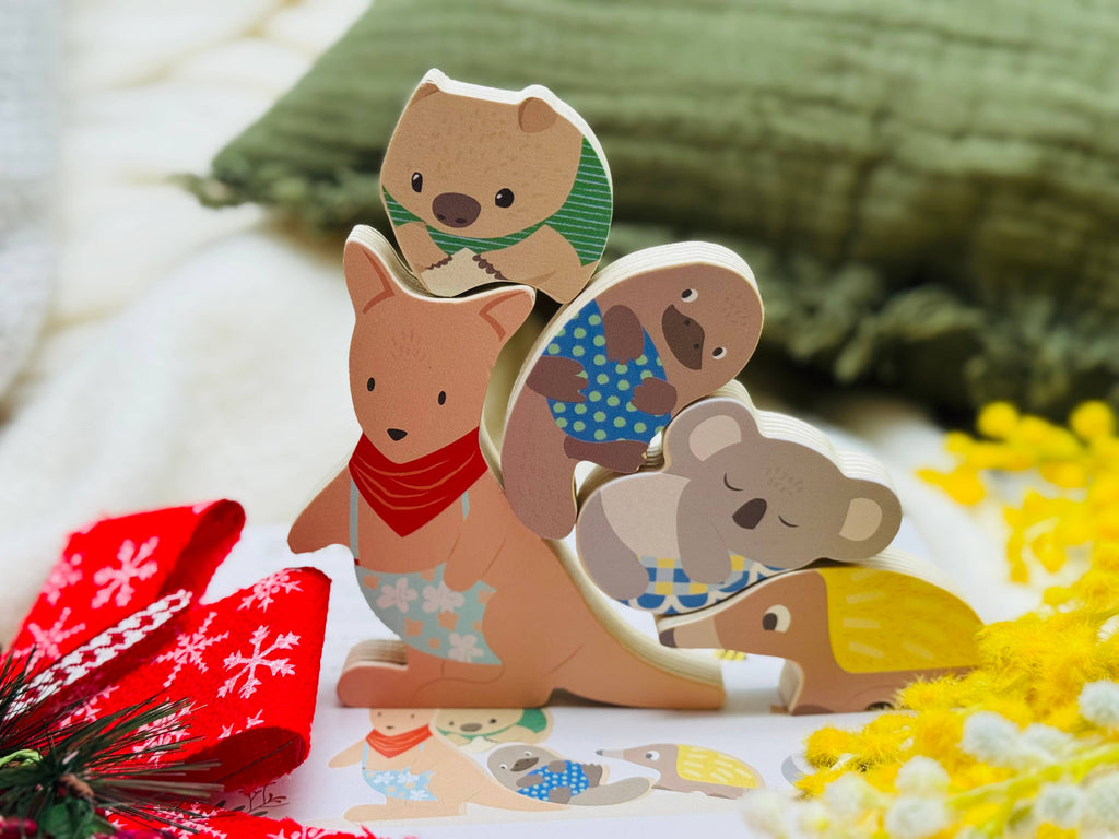 2-in-1 design Children can piece together their favourite Australian animals, or stack them up high to explore balance and creativity. Every chunky wooden piece doubles as both a puzzle piece and a stacking toy.