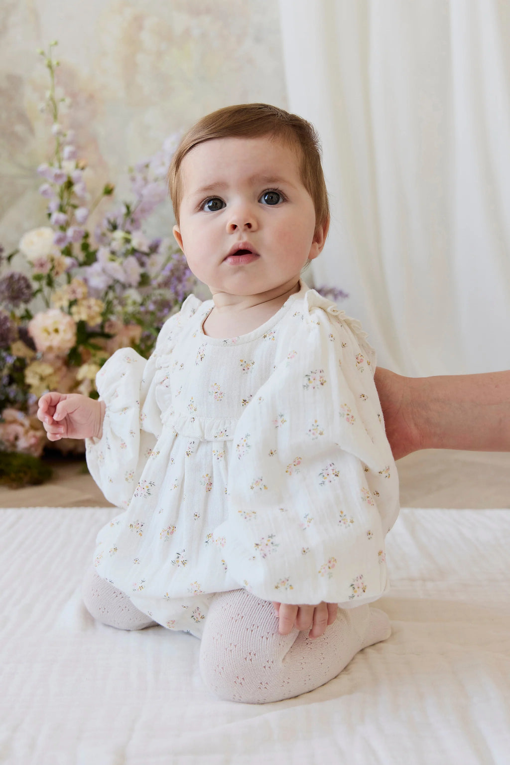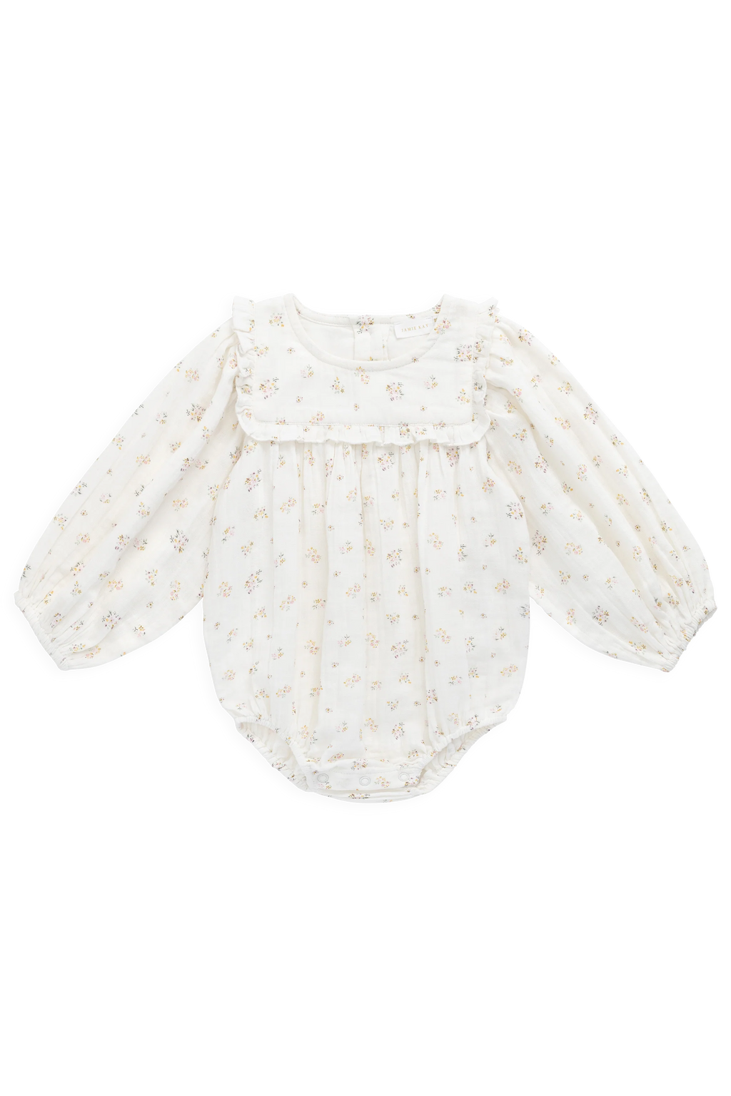 Add a touch of dreamy charm to your little one’s wardrobe with our Frances Playsuit in Ayla Whisper. Featuring a delicate floral print, puff sleeves, and a ruffled square neckline, this piece is perfect for special occasions or everyday wear with a vintage-inspired twist.